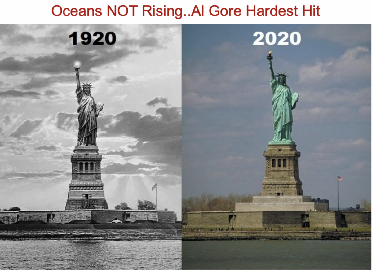 Another big lie that is destroying economies worldwide is through deindustrialization of the free market economies of the developed world by the so-called “green movement”. This is actually a red movement with a green wrapper euphemistically referred to as “the watermelon effect” by those of us willing to open our eyes to the spread of communism. The above picture showing the Statue of Liberty in 1920 and 2020 clearly shows that the catastrophic sea level rise predicted by Al Gore and his doom and gloom cohorts was fabricated to promote a political narrative. Why? Because Al Gore, the Clintons, the Obamas, AOC and many others have profited to the tune of billions of dollars by promoting this nonsense to the sheeple of the world. The fact that Al Gore and the Obamas own multiple beachfront properties is a testiment to their hypocracy. Is there global climate change? Absolutely, just as there has been for the past 6 billion years. Are we about to bake from global warming or drown from catastrophic sea level rise because of human impacts on the climate? NO, but it would be well advised to quit chem trailing and bio engineering the environment, injecting our bodies with untested vaccines, and putting lab created chemicals in everything we eat and drink. We had better start using the common sense stewardship practices developed by the Western industrialized nations, not the communist ones, to clean up the environment. Afterall, the communists never clean up the environmental messes they make because it would cut into their profits.